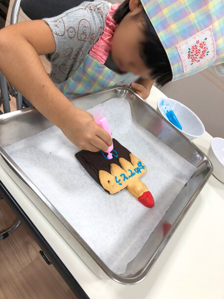 2人ともとても真剣にクッキーにデコレーションをしていました。